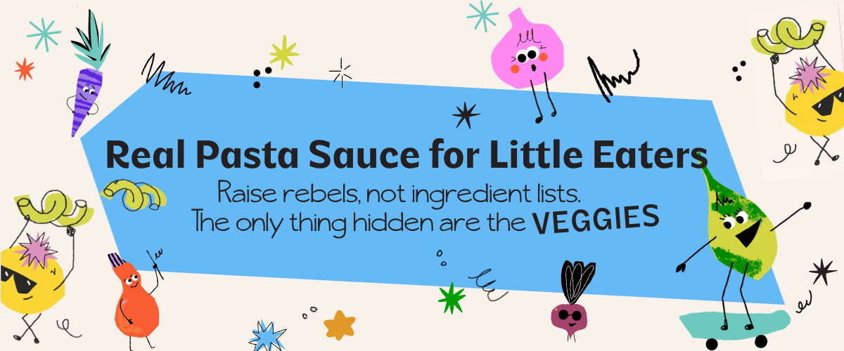 Sweet enough without the sneaky stuff. We don’t add sugar to our sauces—because kids already get plenty elsewhere, and their food doesn’t need a sugar high to taste great.